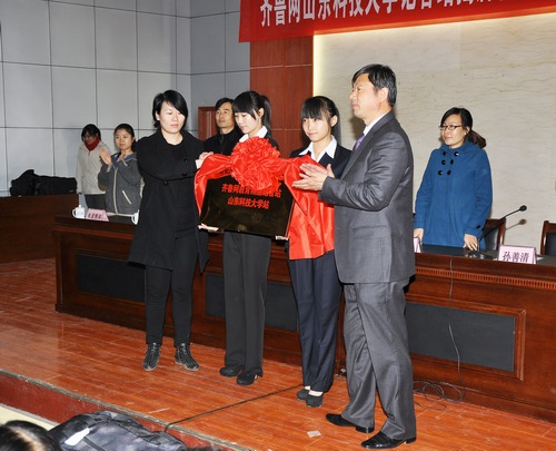 11月27日,齐鲁网教育频道山东科技大学记者站揭牌仪式暨新媒体成就记者梦想报告会在西校园模拟法庭举行。齐鲁网教育频道主编董燕,记者韩仲敏、朱夏雅南,校纪委副书记兼校区(学院)党委常务副书记刘传玺,校区(学院)党政办公室、团委有关负责人,各系负责宣传工作的老师,记者站全体成员及各系从事宣传工作的学生参加了本次揭牌仪式。
