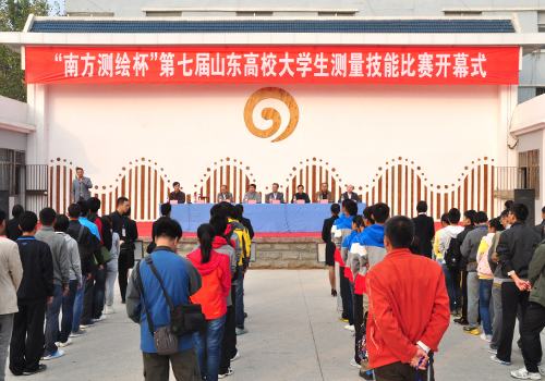 10月19日,由山东测绘学会、山东省测绘行业协会主办,山东科技大学泰安校区、南方测绘仪器公司济南分公司承办的“南方测绘杯”第七届山东高校大学生测量技能比赛在泰安校区举行。副校长兼泰安校区(泰山科技学院)党委书记、管委会主任(院长)王少鹏,山东省国土资源厅总经济师曲荣鹏,山东省地质测绘院总工程师潘宝玉,校区(学院)管委会常务副主任(常务副院长)蒋金泉,南方测绘仪器公司济南分公司总经理成德桂,资源与土木工程系、科研部、团委等相关部门、单位负责人出席了开幕式。来自全省7所高校的14支代表队参加了比赛。