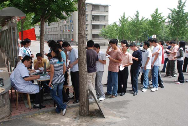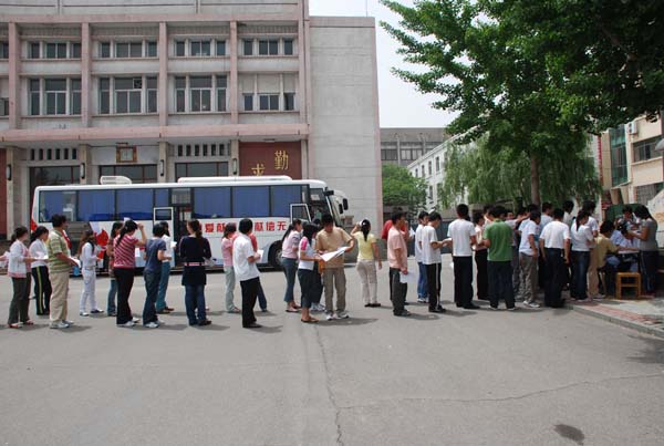 5月24日下午,由文法系心援社发起,文法系团总支与泰安市红十字会中心血站联合举办的以“献出一份爱心,见证一份和谐”为主题的大学生无偿献血活动在校区进行。文法系及其他各系师生约160多人踊跃参加了此次献血活动。