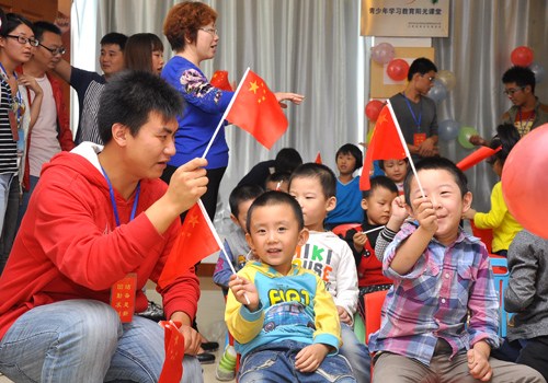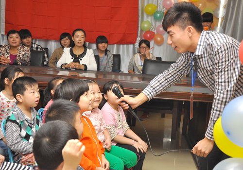 为迎接祖国64周岁生日, 9月28日,由校区(学院)团委、泰前街道圣华社区居委会联合主办,校区(学院)学生会科技联合会、泰前街道圣华社区幼儿园承办的“童心同庆——共同成长” 主题教育活动在圣华社区阳光课堂开课。