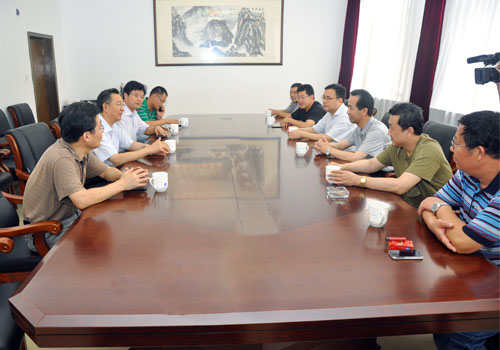 7月20日,我校校友,新汶矿业集团技术总监张明、新汶矿业集团设计院长王光平、新汶矿业集团聊城煤田筹建处主任范振忠、青岛市委办公厅处长高勇等一行回访母校。副校长兼泰安校区(泰山科技学院)党委书记、管委会主任(院长)王少鹏在泰安校区接待了张明一行,校区(学院)负责人苏同营、王民及有关部门负责人陪同会见。