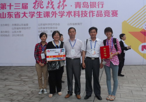 5月27日,在第十三届“挑战杯·青岛银行”山东省大学生课外学术科技作品竞赛终审决赛上,校区(学院)学生刘永庆、白雪、刘晓、孙晓宇等4人的作品《关于东陈村留守儿童教育问题调查报告》(指导教师陈福刚、于华、孔宪军)最终脱颖而出,获特等奖。