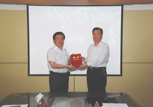 陆诗德首先感谢学校对自己的信任,并表示将继续强化双方在产学研和学生实习、就业方面的合作,严格按照山东科技大学兼职教授的要求做好相关工作。