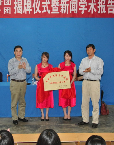 5月14日,泰安市大学生记者团山东科技大学分团揭牌仪式在西校园举行,泰安日报社党委副书记吴立银、山东科技大学纪委副书记兼泰安校区党委常务副书记刘传玺共同为记者团揭牌。双方有关人员及校区学生记者和师生代表参加了揭牌仪式。