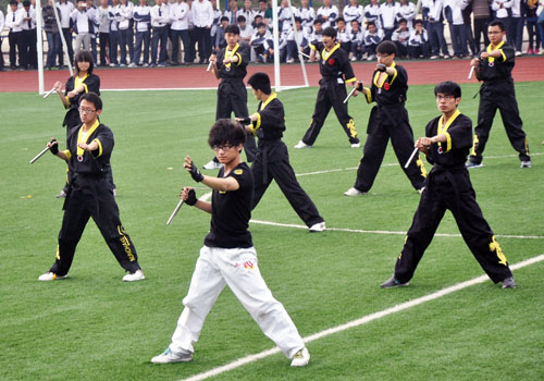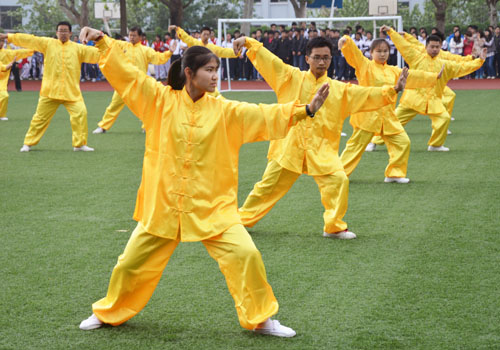 学生刘炀代表全体运动员发言。开幕式上,由校区(学院)体委组织的太极拳、双节棍、健美操队分别做了汇报表演。