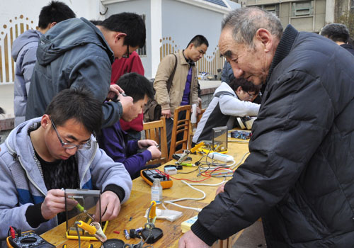 活动现场,记者看到,小到插座,大到音响、电饭锅,都是志愿者们认真维修的对象。家住科大社区的张大爷带来一台收音机,“已经用了五六年了,坏了有一段时间,但没舍得扔掉。”他说,听到社区的宣传,就赶过来让大学生瞧瞧。没过多久,收音机又传出了熟悉的声音,让老人高兴不已。找故障,看原理,查线路,志愿者们忙得不亦乐乎。一件件“问题”家电在志愿者们的“治疗”下,恢复了往日的功用。