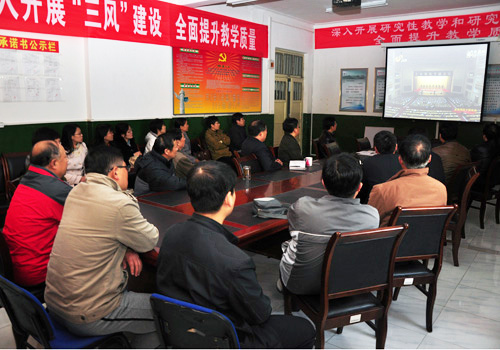 校区领导班子、机关部门教职工分别在211会议室和201会议室集体收看了会议实况,各系(部)及后勤公司党总支根据实际情况,分别组织党员、干部及师生员工进行了集中收听收看。“青未了”文化广场大屏幕播放了会议实况。