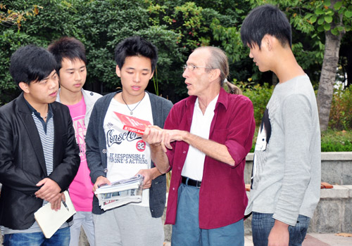 为提升泰安校区国际化氛围和外语教学水平,稳步推进教学质量提升工程,根据学期初制定的《关于进一步加强泰安校区本专科教学工作、保障教学质量的措施》,在学校外事处、济南校区和山东农业大学的大力支持下,校区聘请了澳大利亚的史蒂文先生、印度的刘山先生和美国的辛迪女士三名外教来校执教。