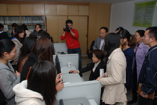 本次参观,是文法系学生档案管理课的实践教学环节。在档案馆里,同学们在听取了档案馆副馆长张在武对档案馆的介绍后,分别对爱国主义教育基地、库房、信息查询点、机房和档案管理办公室进行了参观。在库房,同学们就保存档案的密集架进行了亲手操作,并特别留意了温湿控制器、报警器、烟感探头等先进保存设备;在信息查询点和机房,同学们不仅看到了现代化档案管理中信息化的重要性,还感受到了自身的办公自动化水平的差距;在档案管理办公室,同学们看到了真实的档案手工目录。参观中,副馆长赵力燕还登陆了档案管理政务网,对档案检索直接定位进行了演示。