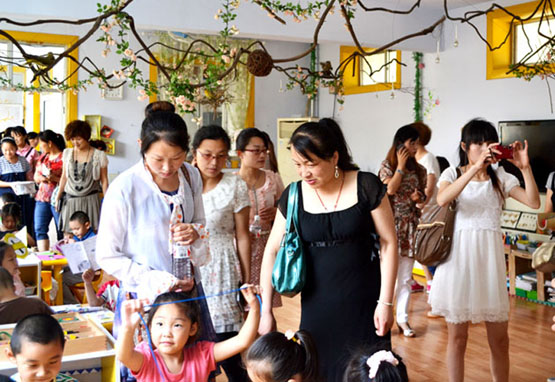 开放期间,参观人员进班参观了幼儿园班级环境创设,观摩了教师的教育活动、区域活动、男教师的体育活动、户外活动及进餐等一日活动的组织与安排,还到档案室等各种专用活动室教学楼参观学习。参观人员纷纷拿出照相机、摄像机记录下每个精彩、值得学习的画面、场景。为给参观人员营造一个良好的学习交流氛围,幼儿园事先召开专门会议进行安排部署,确定专门人员进行接待、讲解和引导,并做好各项服务工作,全方位开放幼儿园,充分展现科大幼儿园“阳光教育”的风采和特色。