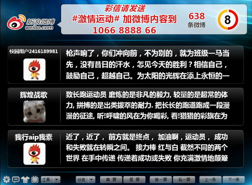 随着网络的发展,微博早已“微”步天下。但对于校园运动会来说,这可是新新事物。为认真搞好此次 “网络运动会”的报道工作,微博站的同学们认真进行了筹划。微协会通过新浪平台,采用“@ 山科大泰山科技学院微博协会”的形式征集运功会宣传稿和精彩图片,加大了宣传的力度。