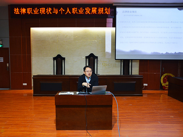 何明律师首先向同学们介绍法学专业毕业生的就业方向,并对新型商务律师、司法鉴定从业人员等新兴职业进行讲解。随后,他简要阐述新中国成立前后律师制度的沿革、泰安等地区法律职业现状。接着,何明提出,职业生涯规划包括谋生计、谋生活和谋事业三个层次,大学生应根据自身的兴趣、特长和能力选择适合自己发展的事业。对于如何进行职业生涯规划,他提出以下建议:一、规定时间计划表,合理利用时间;二、善用法律检索工具、办公软件等管理工具;三、在平凡或卓越等价值观问题上做出抉择,选择好自己的人生方向。最后,何明就如何进行个人品牌塑造进行指导。他指出,要打出自己的招牌、获得别人的赏识,同学们应做到高情商与熟技能的结合,大学生不仅要有良好的沟通和交往能力,还要有资源、技能等核心能力,做到靠自身专业知识立足,从而获得更多平台和机会。