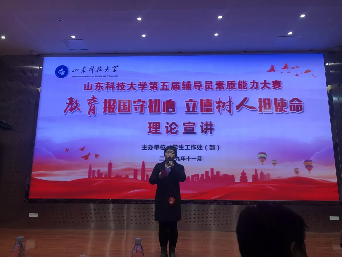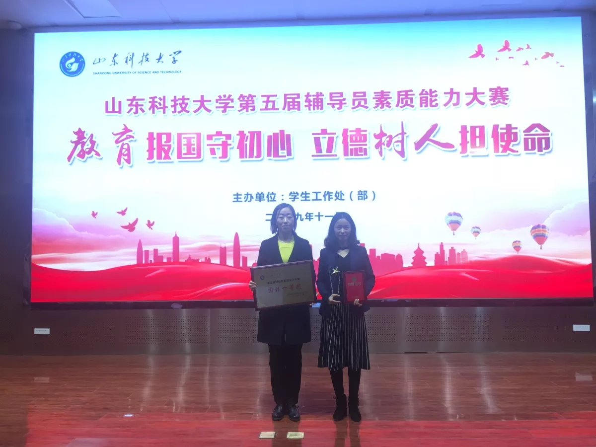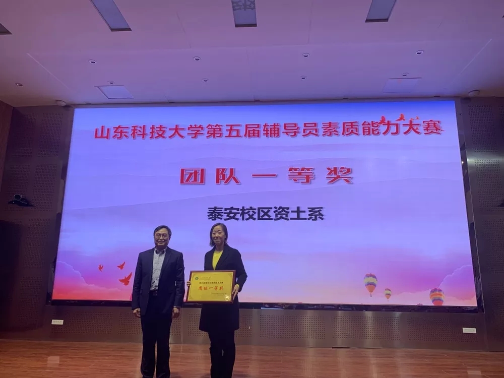 11月29,第五届山东科技大学素质能力大赛在黄岛校区落幕。资土系辅导员洒艳、张裴、张娜组成的代表队凭借扎实的工作基础、专业的职业素养和优异的现场表现从全校24支队伍中脱颖而出,勇夺团队第一名;洒艳和张娜分别获得理论宣讲和基础知识测试第一名,荣获个人最佳风采奖。