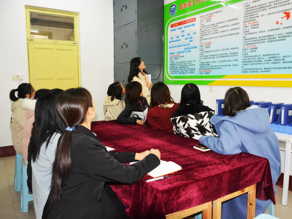 近日,为在学生宿舍内实现“六化”,创建“四个良好”,文法系依托学科交叉渗透,全力推进社会工作视野下学生宿舍“三全育人”模式运行,并在6号学生宿舍楼内建立“三全育人”工作室。