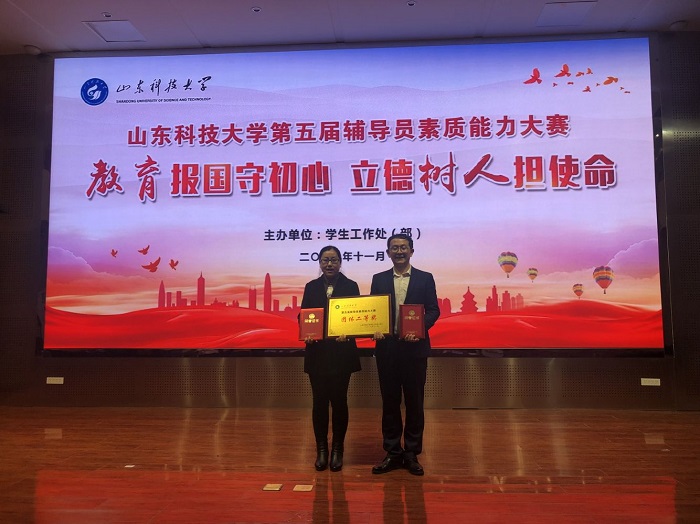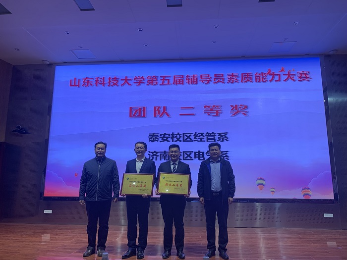 11月29日,第五届山东科技大学素质能力大赛在黄岛校区落幕。经管系选派辅导员谭娜、卢业美、王备备组队参加,经过激烈赛事,最终以总分第二名的成绩夺得团体二等奖,王备备和卢业美分别荣获个人最佳风采奖。