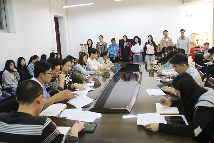 经过前期个人申报和严格初审,最终6名国家奖学金、2名省政府奖学金候选人进入答辩环节。根据此前的抽签顺序,8名候选人依次进行自我介绍和现场答辩。各候选人分别从思想政治、学习成绩、科研创新、社会实践、工作生活等方面向大家展示了自己在大学期间取得的优异成绩,以自信的态度、从容的介绍、认真踏实的作风,赢得了老师、评委们的好评,现场响起阵阵掌声。各评委围绕候选人书面材料和个人介绍进行提问,指出不足之处并提出整改建议。