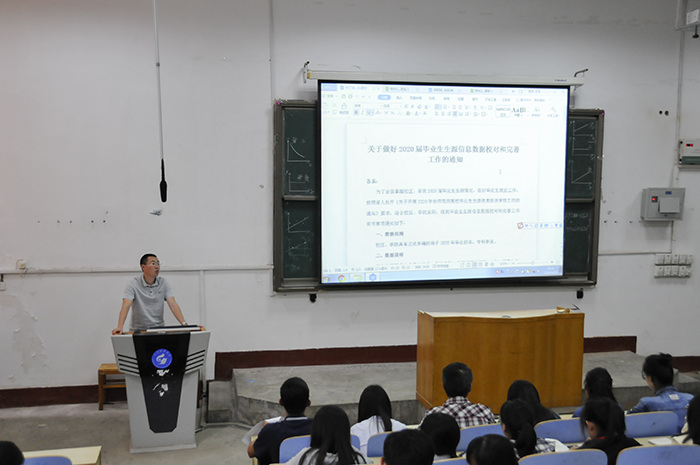 9月19日,信息系于1A107召开毕业生生源信息数据校对及补充完善会议。系党总支副书记裴国栋、专职辅导员高琳、曹园及2020届毕业生代表参加,会议由信息系团总支书记蒲蓬勃主持。