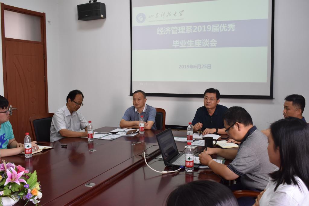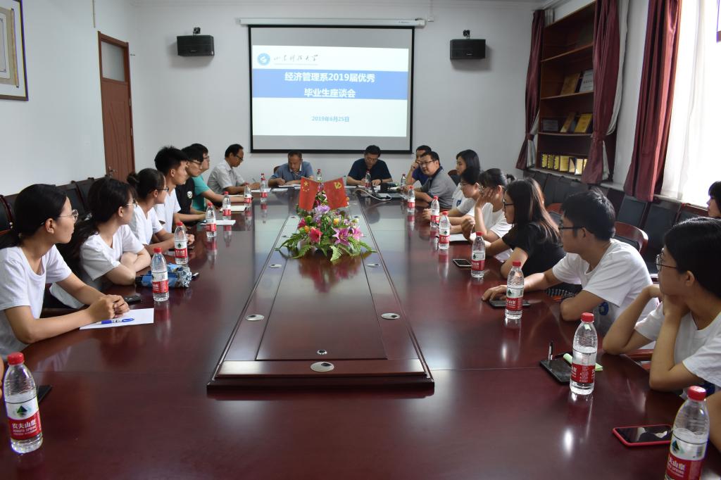 6月25日下午,经管系于4205会议室举办2019届优秀毕业生座谈会。经管系党总支书记张恩生,系主任周洋,党总支副书记刘凯,系副主任张振华,系副主任刘庆志及各专业优秀毕业生参加座谈会。