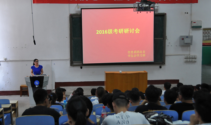6月18日,信息系于1A107举办2016级考研研讨会。此次会议由2016级有考研意向同学参加,辅导员卢业美主持。