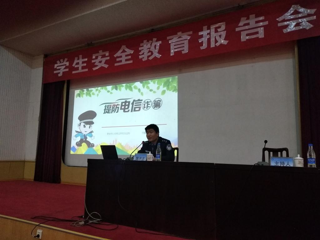 4月28日,安全保卫部与学生工作处组织举办防电信网络诈骗专题报告会,邀请泰安市公安系统专业防电信网络诈骗专家魏洪志警官来校作报告,报告会在4号楼报告厅举行,近280名学生骨干参加。