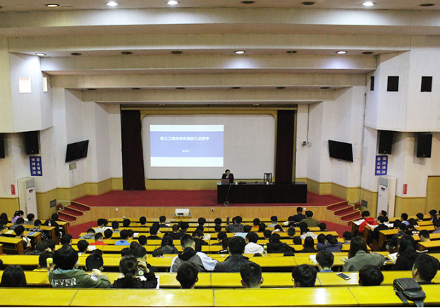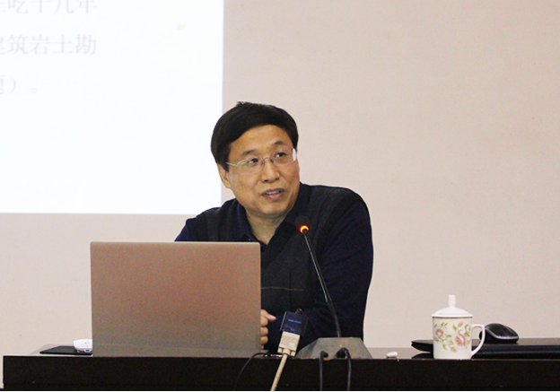 4月25日,资土系邀请山东省地矿工程勘察院副总工程师、富民兴鲁劳动奖章获得者、山东省勘察大师盛根来在4号楼报告厅为资土学子作题为“岩土工程研究热点与发展趋势”的学术报告会,系副主任王清标主持,资土系部分专业同学参加。