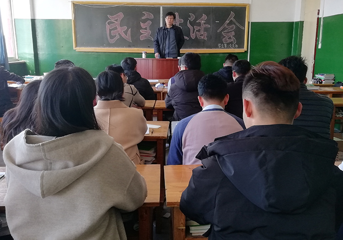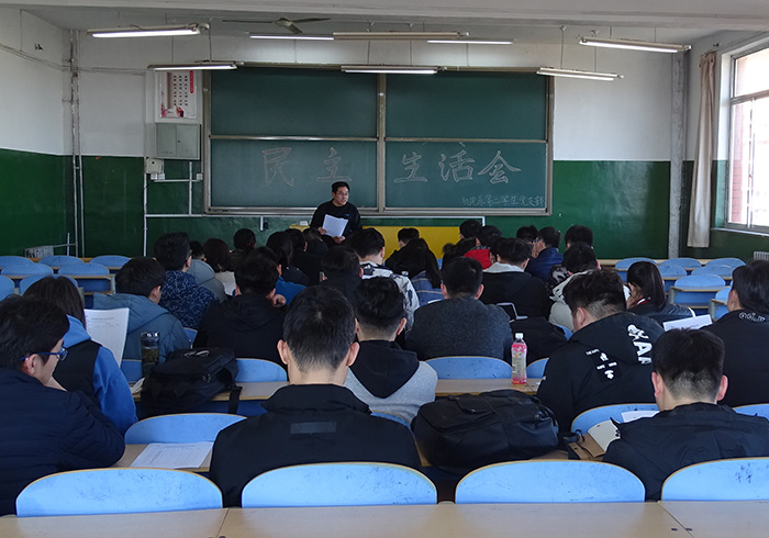 3月12日,机电系各学生党支部召开民主生活会并开展2018年度民主评议工作。会议分别在2号教学楼401、403和405教室举行,分别由学生第一、第二、第三党支部书记王衍国、周立志和吴天南主持。