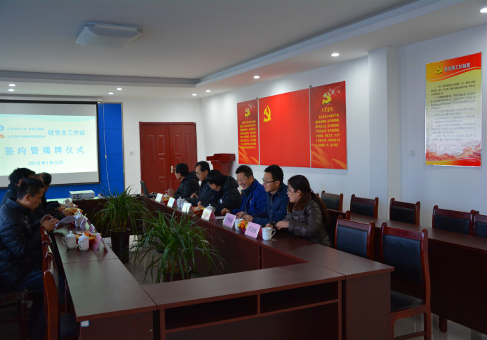 泰安校区科研部朱学军主任与高压开关有限公司总经理汪建成共同为研究生工作站揭牌。