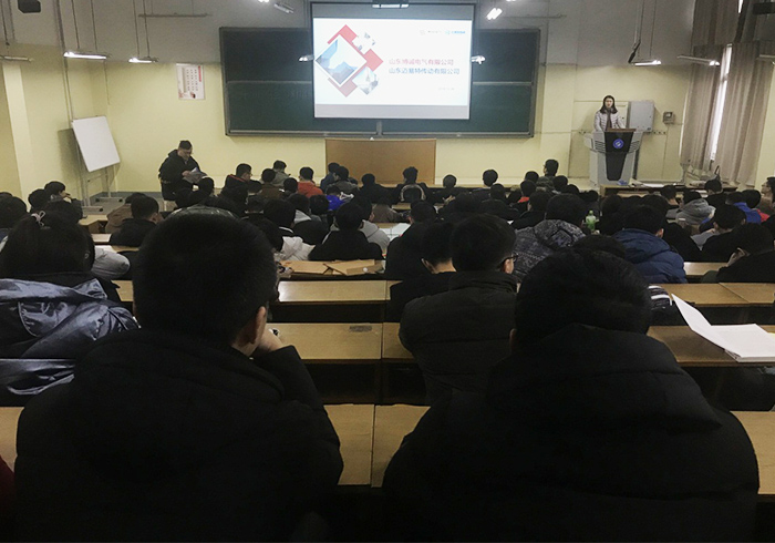 12月26日下午,山东博诚电气有限公司在5#306召开企业宣讲会。公司经理张妮娜等三人为机电学子进行宣讲,机电系100余名2019届毕业生参加。