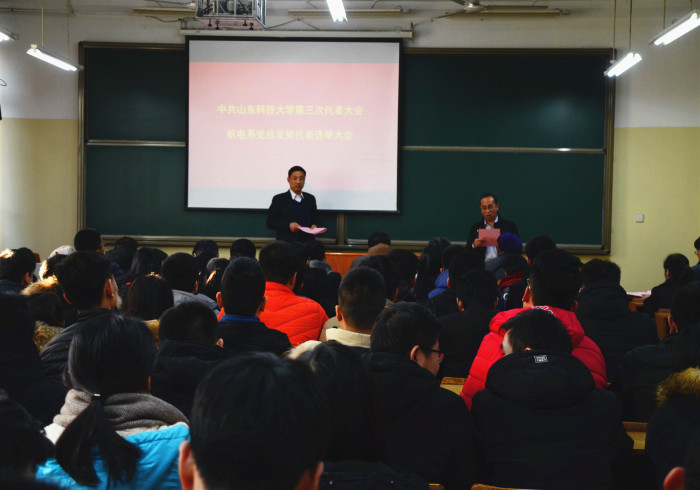 12月14日,机电系在5#203召开中共山东科技大学第三次代表大会系党总支党代表选举大会,会议由系党总支书记张建中主持,机电系全体党员参加。