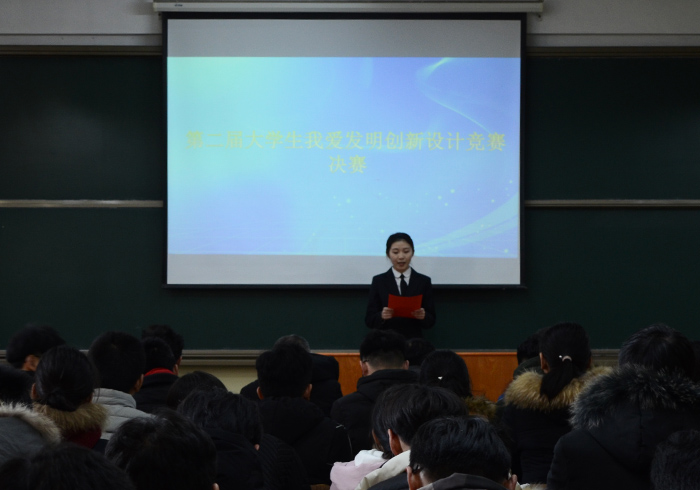 12月13日,机电工程系大学生科技联合会在5#201举办第二届大学生我爱发明创新设计大赛决赛。系团总支书记谢清勇,自动化专业武超、高学辉、祝长生老师,大学生科技联合会主席曹堰安担任评委,文艺部干事李文秀主持。