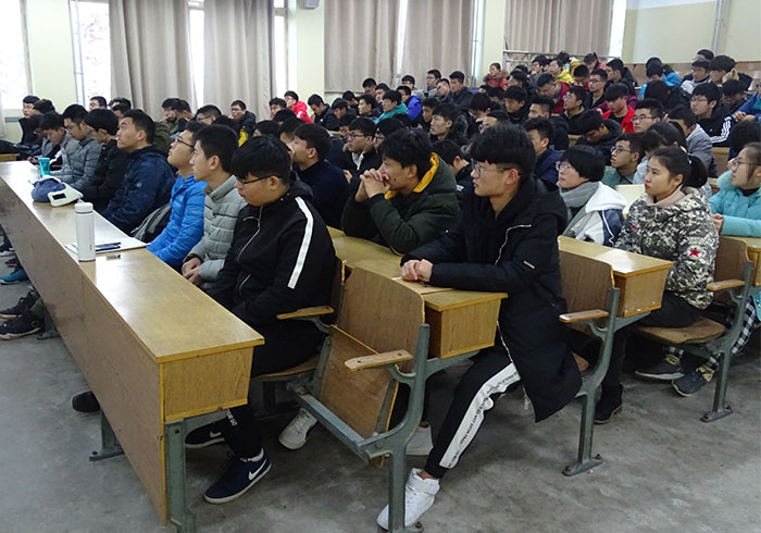 谢清勇以提问的方式导入,介绍大学生参加科技创新对个人今后的发展起到的作用。他结合“蚊子咬人”这一问题并举例子向大家说明什么叫创新,告诉大家科技创新并非高不可攀,人人皆可为之。近几年校区和机电系为学生科技创新提供良好的发展平台,截至目前学生可参加的各类科技创新活动达到五十余项。但同时学生在参加各类科研项目和科技创新活动的申报过程中暴露出材料书写功底较弱的问题,他从选题的意义、途径、思路、切入方向、项目题目的要求以及申报材料中出现的问题等方面对材料书写进行详细的分析说明。最后,谢清勇给同学们提出四点建议:一是要提前准备,确定自己的研究方向;二是要积极与老师取得联系,主动沟通;三是课题选择的难易程度要适中;四是所研究的项目最好能出成果。(文: 崔译丹 曹浩浩 图:崔译丹 编辑:董梦琪)