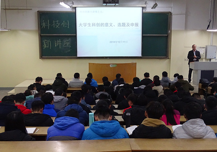 12月11日,机电系在5#206举办科技创新大讲堂第五讲。系团总支书记谢清勇为同学们做“大学生科技创新项目的选题与申报”专题讲座,