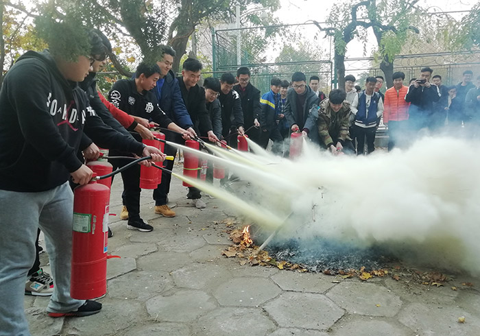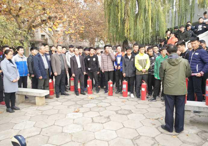 11月20日,机电系在体育馆西侧组织消防知识培训,校区保卫部主任王胜禹、机电系党总支副书记殷永贵、团总支老师及100余名机电系学生参加演练。