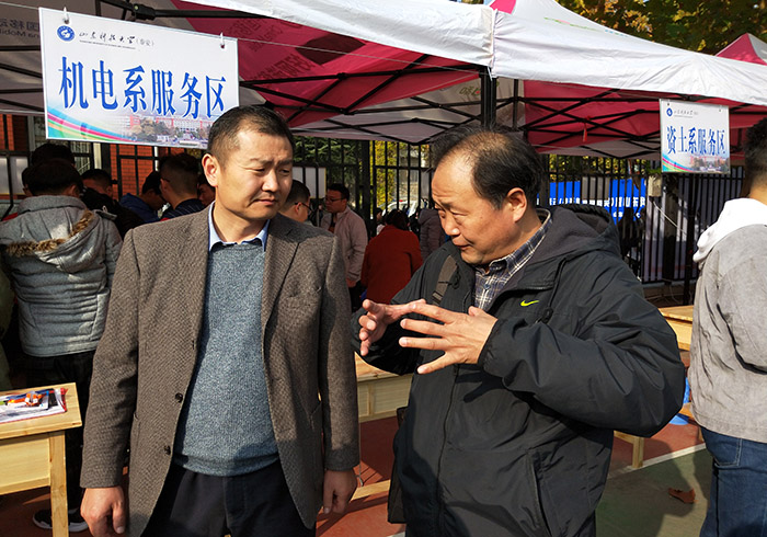 11月10日,山东科技大学泰安校区在东校操场举办2018年秋冬季供需见面会。系主任刘然慧、系党总支副书记殷永贵、系副主任刘瑞国、娄淑梅、系团总支书记谢清勇,各教研室主任、就业导师、系全体辅导员来到招聘现场。