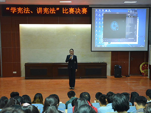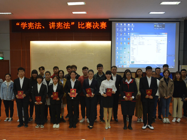 10月16日下午,由文法系团总支主办、学生会承办的第三届“学宪法、讲宪法”比赛决赛在模拟法庭落下帷幕,学生会副主席王子旭、各部门部长及社团负责人担任评委。