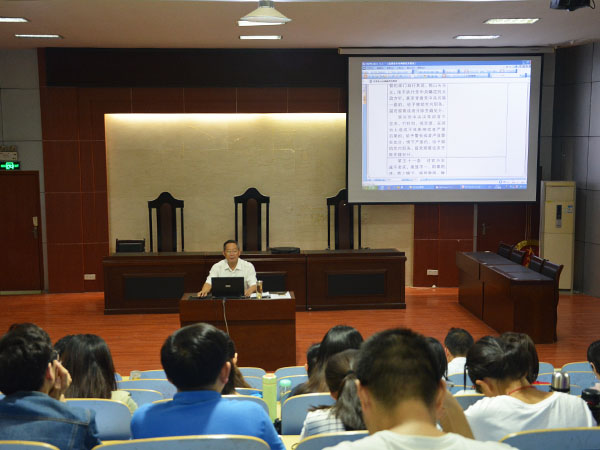 9月18日下午,文法系全体教工和学生党员在模拟法庭开展党课学习活动,党课由系党总支书记马福泉主讲。