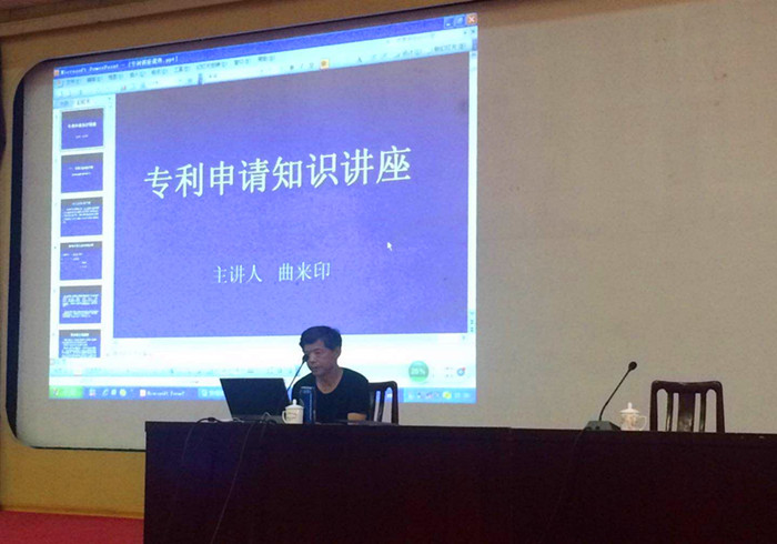 曲来印从专利和知识产权的关系、专利申请的客体、专利申报流程、专利文件的撰写四个方面向大家介绍专利申请的相关知识,重点就专利申请的流程及专利申请书的撰写方法,注意事项进行系统的讲解。他鼓励老师们及时将科研成果申请专利保护,鼓励同学们积极参与科技创新,并将自己的科技创新成果申报专利。会后,曲来印对师生的现场提问进行解答。(文: 曹浩浩 图: 谷继盖 编辑:李楠)