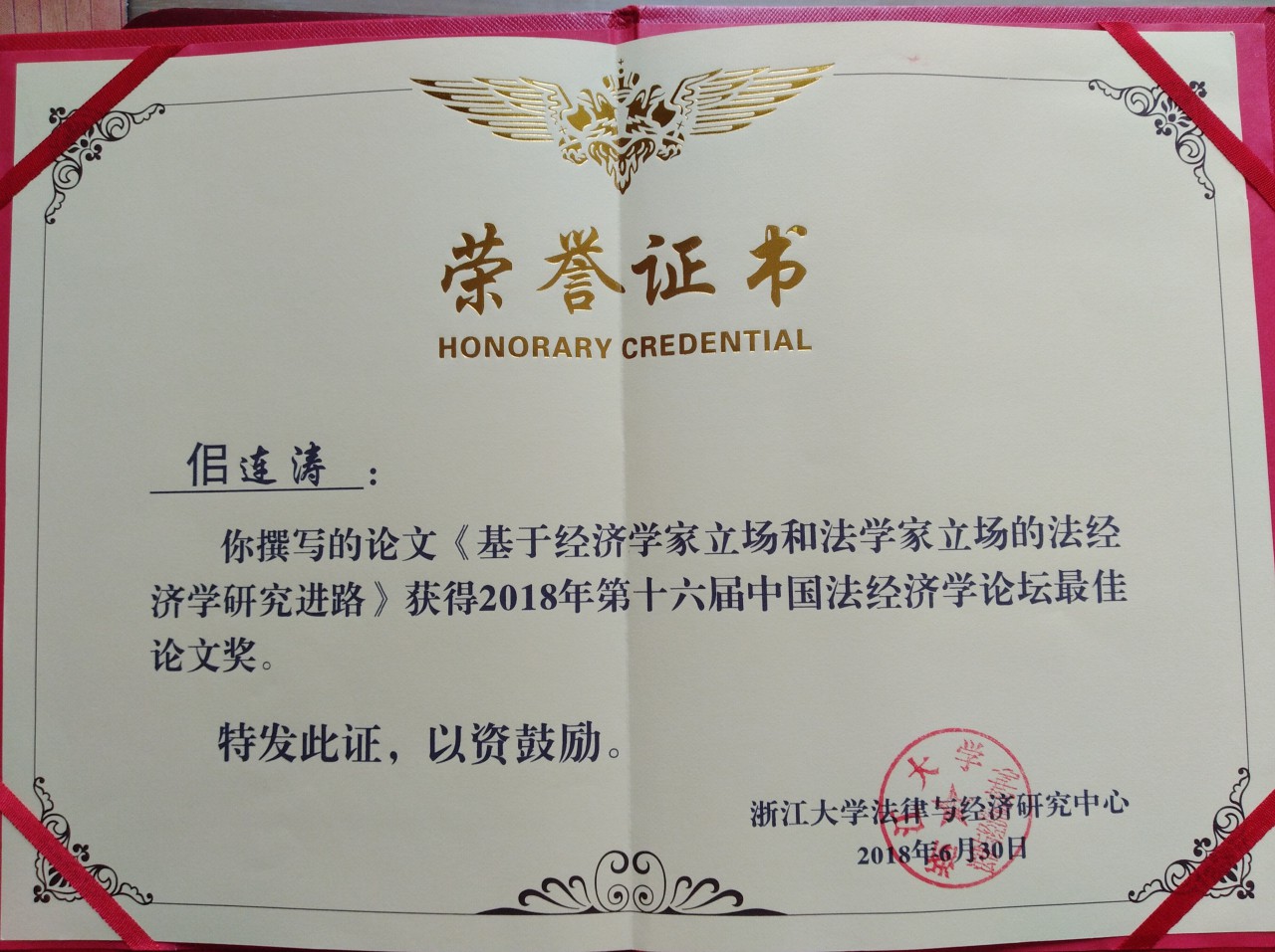 本届论坛共设有“理论与历史”、“金融与制度”、“增长与发展”、“政府与市场”、“司法与犯罪”、“创新与知识产权”、“乡村治理”、“企业治理”和“劳动与社保”等10个分论坛。在 “理论与历史”分论坛上,首都经济贸易大学在读博士、文法系教师佀连涛就《基于经济学家立场和法学家立场的法经济学研究进路》一文进行了主题发言,浙江大学史晋川教授、山东大学李增刚教授进行了论文评议,该论文获得了与会专家学者的肯定。浙江大学法律与经济研究中心设立了奖金基金,对论坛评选出的 9篇优秀论文予以奖励,佀连涛老师撰写的该篇论文获得了第十六届中国法经济学论坛的最佳论文奖。(文:郭涛林 编辑: 陈钰晓)