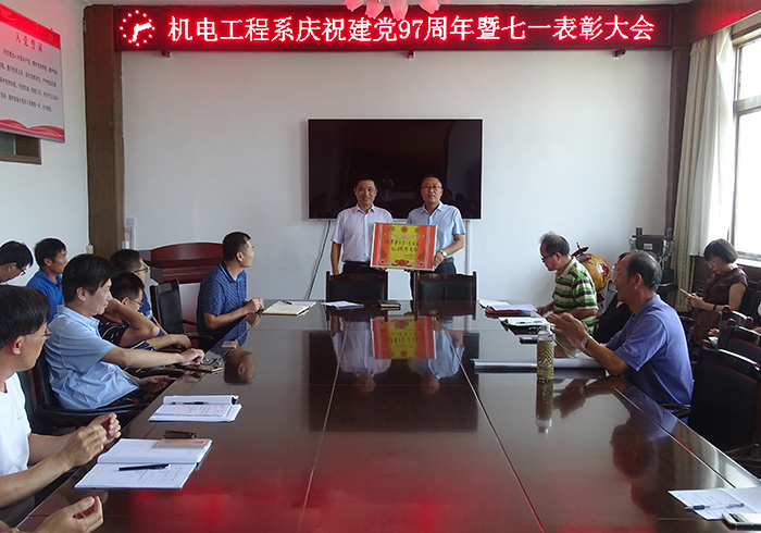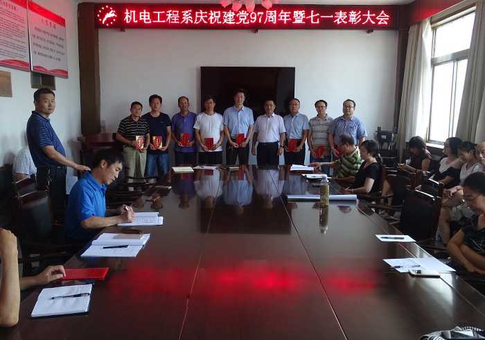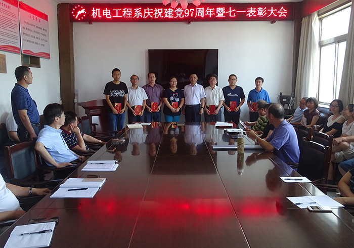 6月27日,机电系在系会议室召开庆祝建党97周年暨七一表彰大会。系党总支书记张建中及系全体教工党员参加大会。会议由系党总支副书记殷永贵主持。
