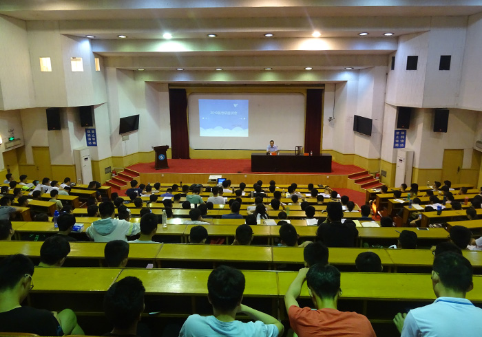 殷永贵从机电系学生现状、历届研究生的实例、社会背景和考研理由四个方面进行考研动员。他分析了整个科大及泰安校区机电系的考研状况,以当前社会的发展趋势为切入点解释了大学生为什么要考研,并对同学们提出考研建议。他结合各城市发布的人才计划和近年来本科生找工作的压力等方面强调了高学历人才的重要性。他说:“无数个通过考研改变人生轨迹的事例告诉我们,我们通过考研可以接触到更高的人群、获得更高的事业、完成更高的人生价值。” (文/图: 谷继盖 编辑:刘聪)