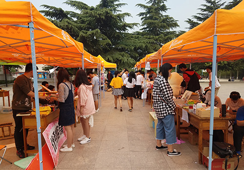 上午九点,协会负责人屈云贺主持启动仪式,一系列文艺表演过后,大学生创业周活动正式开始。该活动面向东校全体学生,共有25个队伍参加。活动中,协会为参赛者提供摊位,参赛者在摊位内自由创业,消费者在一个摊位内消费满20元则可参加抽奖活动。