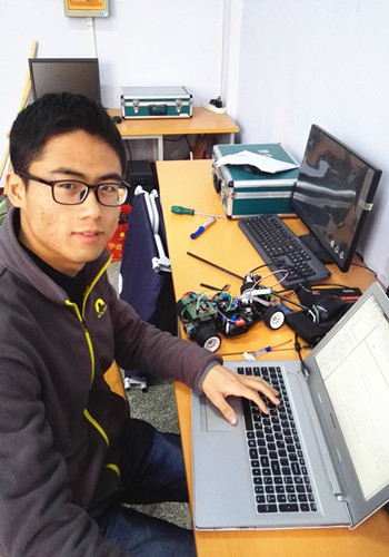 这是朱栋栋准备2017年第十二届全国大学生“飞思卡尔”杯智能汽车竞赛时的真实写照。朱栋栋的舍友开玩笑道:“他比赛前的一个学期里,实验室是他的宿舍,智能车是他的舍友,如果不在实验室,就是在去实验室的路上。”