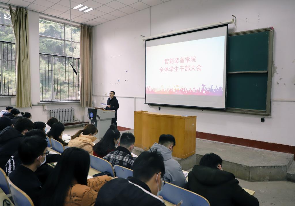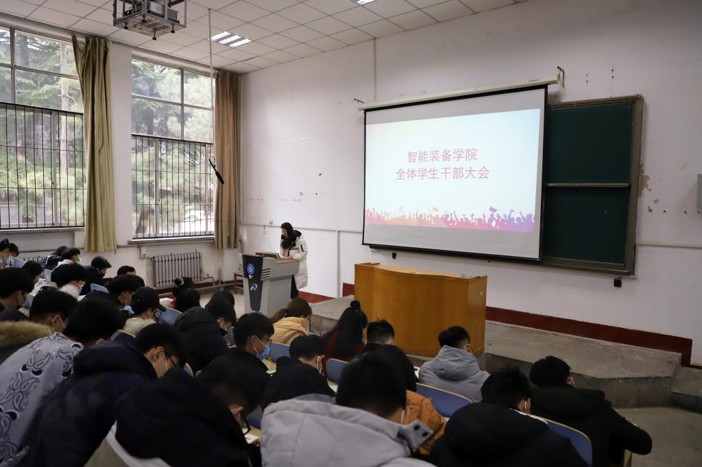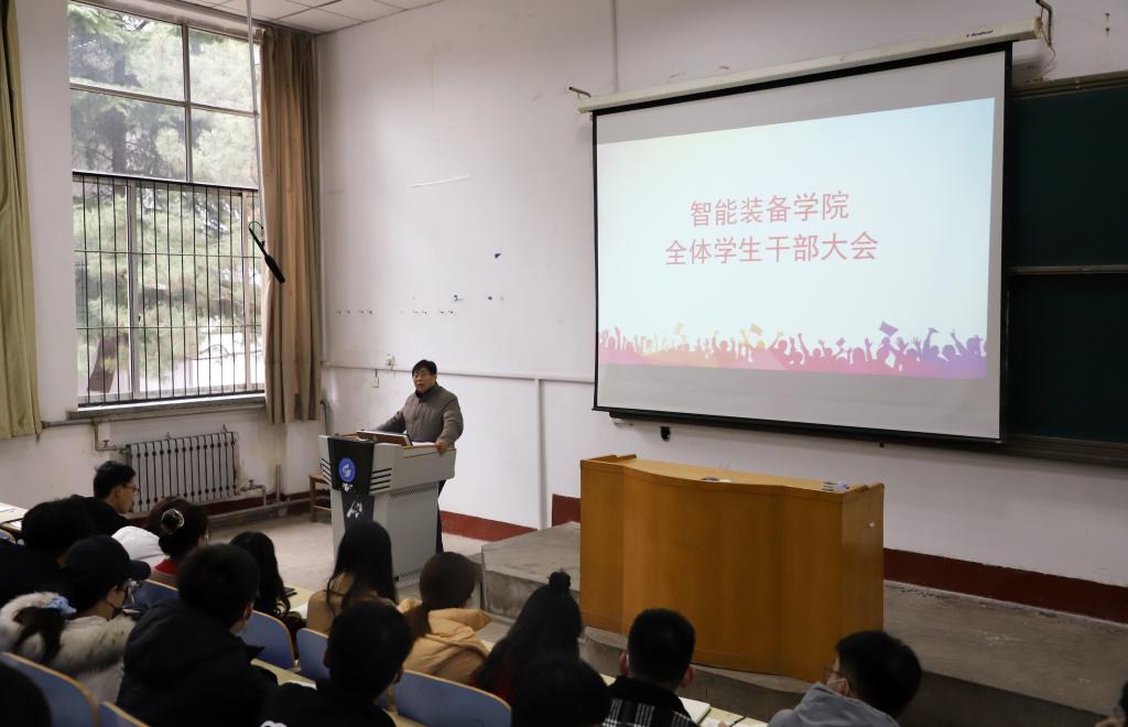 2月28日,智能装备学院于东校园四号楼报告厅、西校园1A107举行学生干部培训会,智能装备学院党委副书记兼副院长裴国栋、学院团委书记谢清勇、学院团委副书记高琳及全体辅导员出席会议。本次会议分别由高琳、辅导员郭艳培主持,全体学生干部参会。