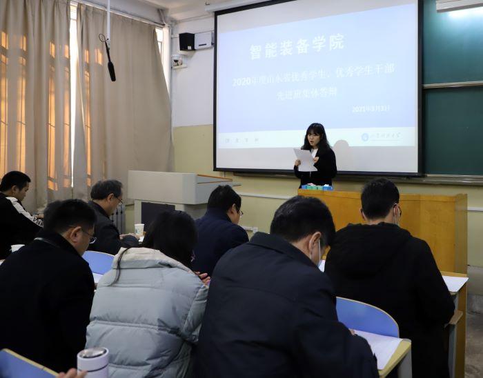 3月3日,智能装备学院在西校园2104举办省级优秀学生、优秀学生干部、先进班集体评选会。学院党委副书记兼副院长裴国栋、学院团委书记谢清勇、团委副书记高琳以及全体辅导员出席评选会,2020级主要学生干部进行了现场观摩学习。