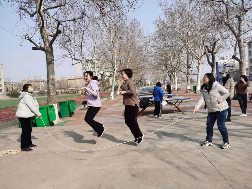 全体女教职工结合自己实际情况,分别在东、西校园运动场举行了乒乓球友谊赛以及跳绳比赛。大家积极参加、热情洋溢,展现了阳光、快乐、向上的风采。