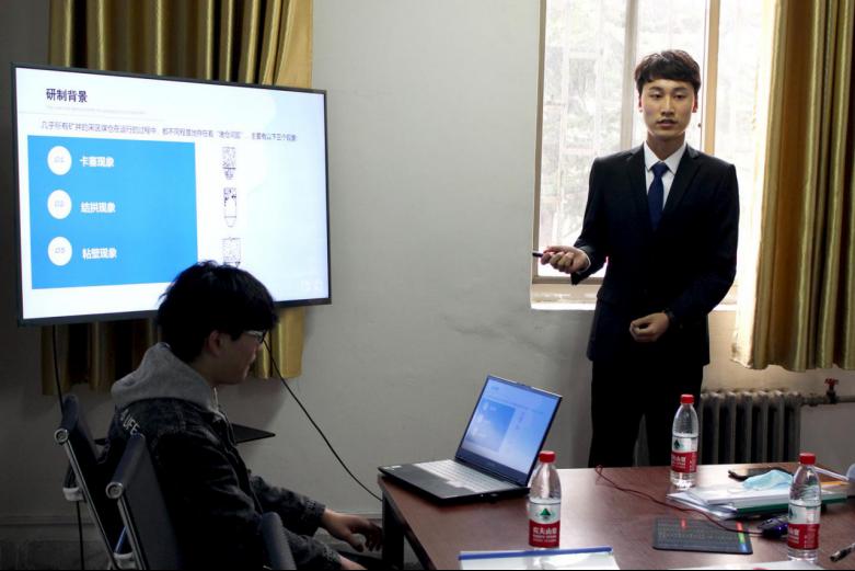 3月19日,资源学院组织入围“挑战杯”决赛的5支队伍在3#307进行模拟答辩。智能装备学院老师李东民、学院团委辅导员尹发利出席到模拟答辩现场,为参赛队伍提出建议,指明改进方向。