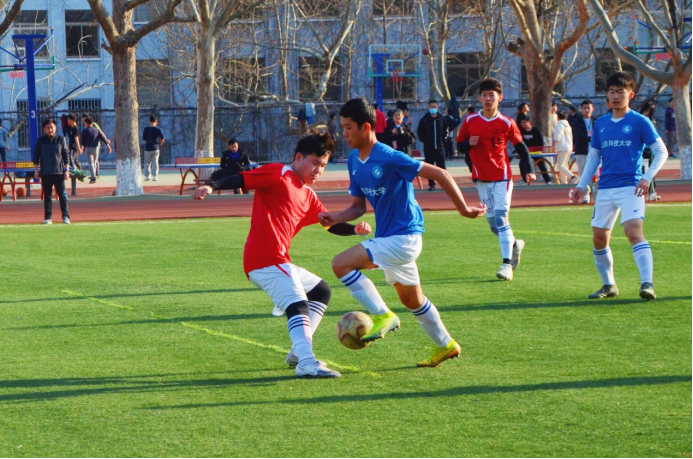 3月22日,2021年大学生男子足球联赛比赛在东校园足球场持续进行,此次比赛为智能装备学院足球队与财经学院足球队的角逐。