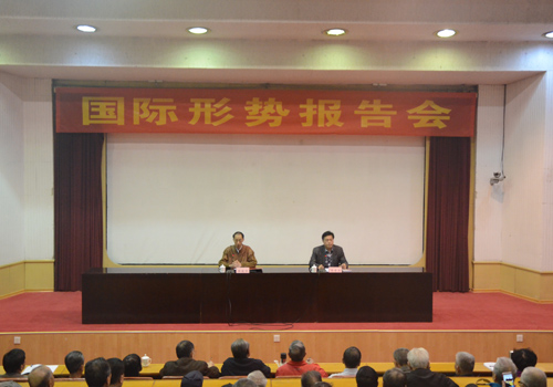 4月12日,外交专家周晓沛在4号楼报告厅作国际形势报告会,百余名机电学子现场聆听本次报告。