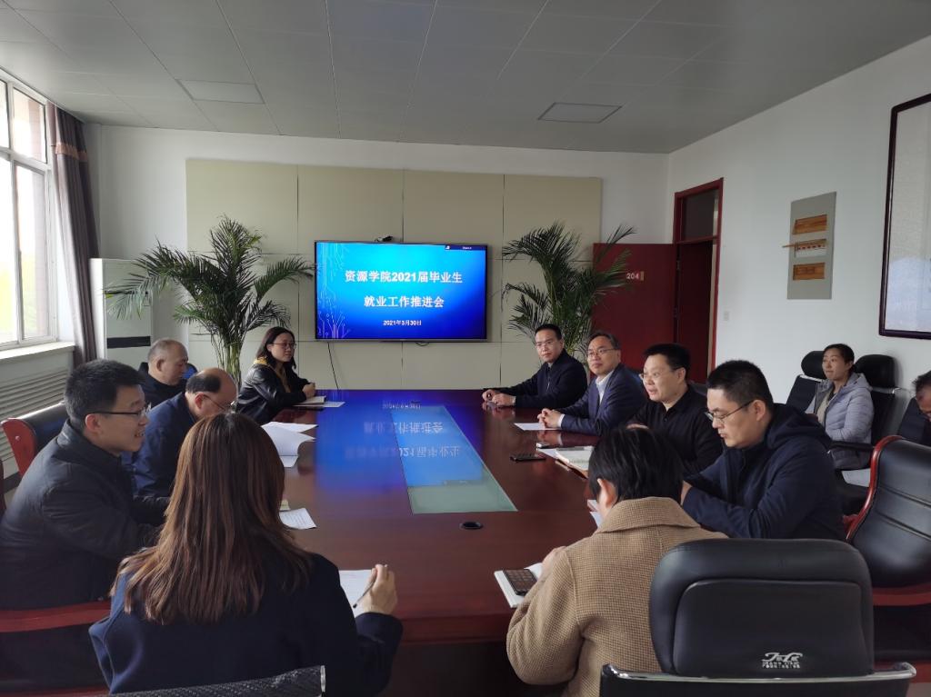 3月30日, 资源学院召开2021届毕业生就业工作推进会,党委书记高尚宇、院长王清标出席会议并讲话。会议由党委副书记程家国主持,学院各系、部门负责人、毕业班辅导员参加会议。