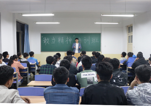 3月29日晚,资土系学生会在3#413开展首期“敢当精神”培训班。第一期培训班邀请学生会四位部长作为主讲。